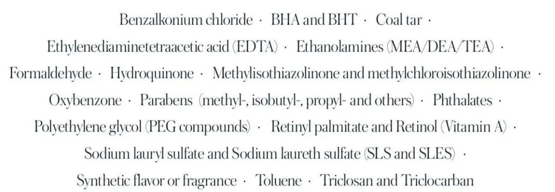 Clean Beatuy主张使用符合纯净标准、经过安全性评估的成分,且添加原料的安全信息是在被不断动态更新的。这和所谓的“0添加”(通常被理解为不加香精、防腐剂、化学成分....) 完全是两个概念。
