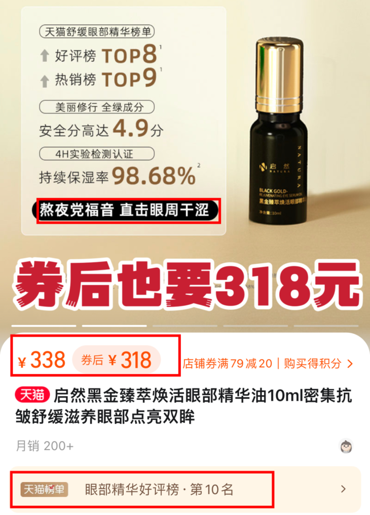 因此客人更是在家也囤了启然黑金臻萃焕活眼部精华油。