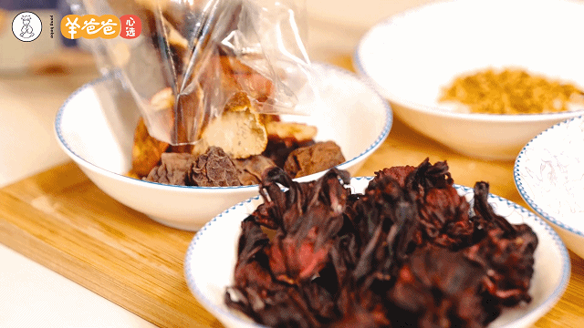 玫瑰茄。就是干制的洛神花。它也是酸的,同气相求,相须为用,滋阴养血的效果更好。另外玫瑰茄还负责乌梅饮的“颜值”,一杯好的乌梅饮,不仅口感要纯正,最好还要有如红宝石一般的汤色,才好看。