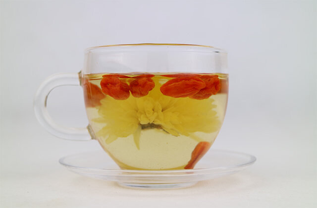现代医学研究证明:枸杞有免疫调节、抗氧化、抗衰老、 抗肿瘤、 抗疲劳、降血脂、降血糖、降血压、补肾、保肝、明目、养颜、健脑、排毒、保护生殖系统、抗辐射损伤等十六项功能。中医认为,菊花入肝经,其味甘苦,性平,具有清热祛风、平肝明目的功效,可以缓解视力疲劳、头痛、咽喉肿痛等症状。《神农本草经》认为:“久饮菊花茶,能够利血气,使身体轻盈,能耐老而延寿”,又云:白菊花“主诸风头眩、肿痛、目欲脱、皮肤死肌、恶风湿痹,久服利气,轻身耐劳延年。”因此,春季时常喝点菊花茶饮,可以清肝火,平肝阳,祛肝风,对于缓解眼睛迎风流泪、视物模糊等不适及肝阳上亢导致的头痛、头晕等具有一定作用。蜂蜜具有润肺止咳、养颜、通便等作用。《本草纲目》记载,蜂蜜除众病,合百药。久服强智轻身,不饥不老,延年益寿。蜂蜜还有滋润皮肤的作用。4.水温约40-50度时,滴蜂蜜2-3滴,这是我们一天的剂量。