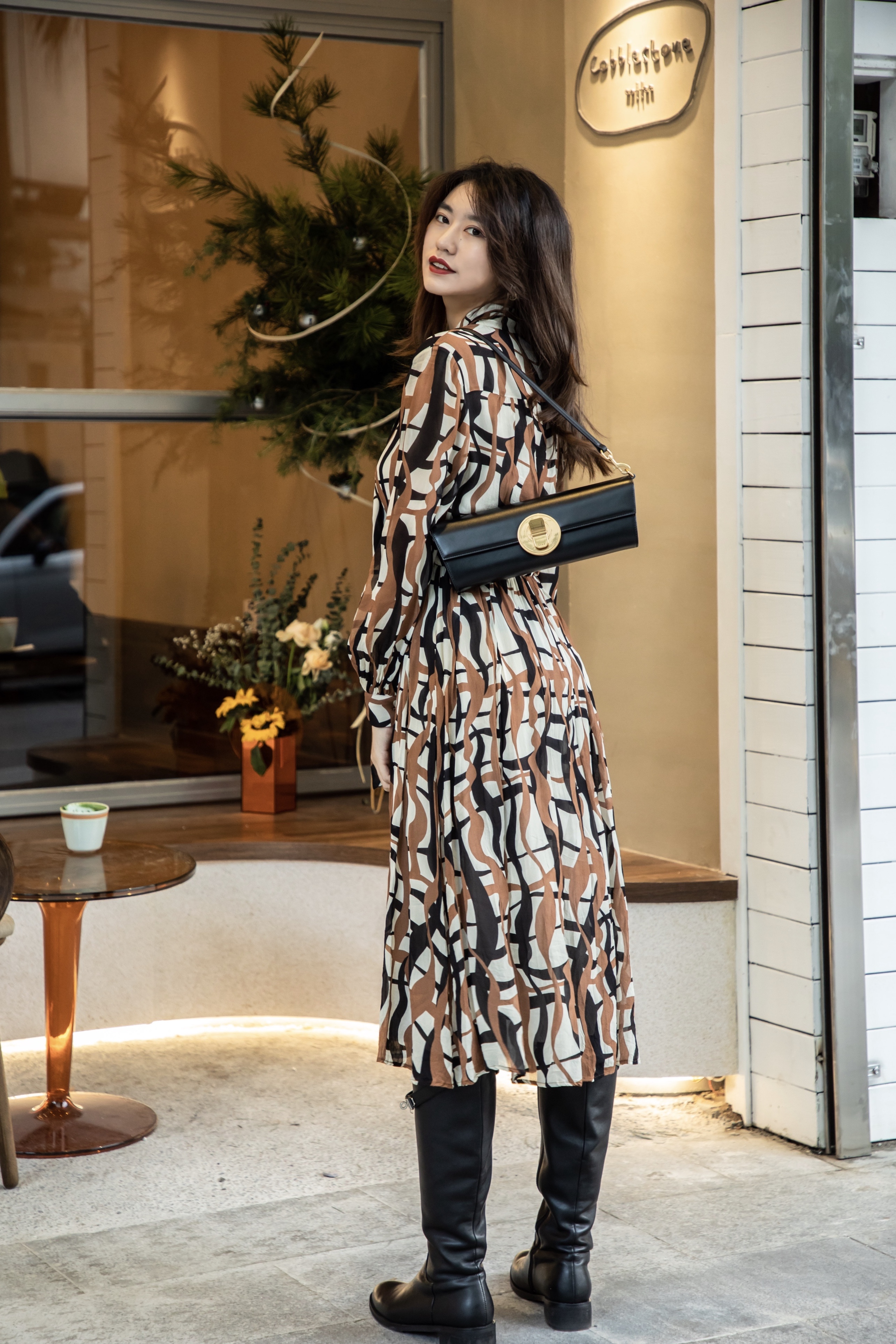 连衣裙作为时尚潮人的出街利器,同时也非常适合日常穿着!深栗色波纹印花连衣裙就是这种非常适合穿出门逛街的款式~裙子颜色沉稳但不失单调,优雅的收腰圆领设计,很适合打造富有女性魅力的造型~长裙摆还能遮挡肉肉勾勒身形!是一件出街利器没错了~