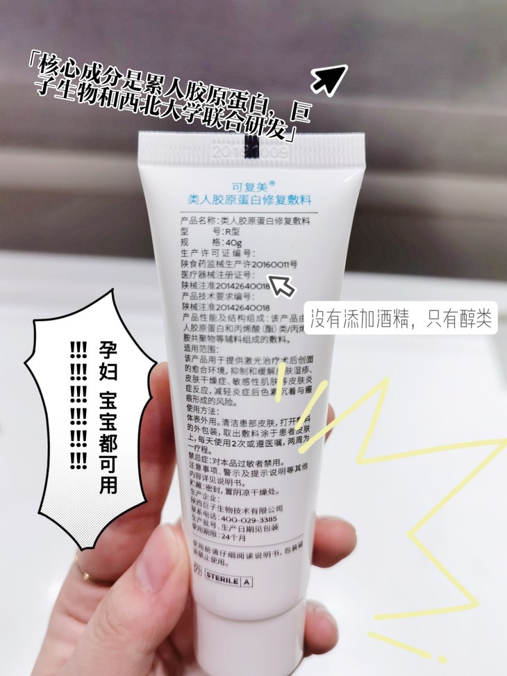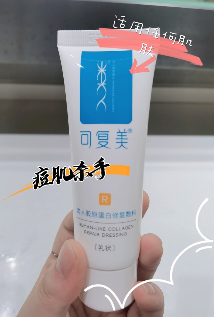 随着年龄的增长,我们脸上的胶原蛋白也在逐渐流失,这时候就导致了很多姐妹皮肤出现松弛、细纹的情况,所以抗初老补充胶原蛋白还是很重要的。所以今天给大家推荐的这款可复美类人胶原蛋白修复敷料R型里面的主要成分就是类人胶原蛋白,这种类人胶原蛋白是可复美的专利成分,获得过国家级奖项呢,绝对的安全可靠,而且是二类医疗器械,这款可复美械字号修复乳的类人蛋白和人体内的胶原蛋白是很相似的,所以很好吸收!