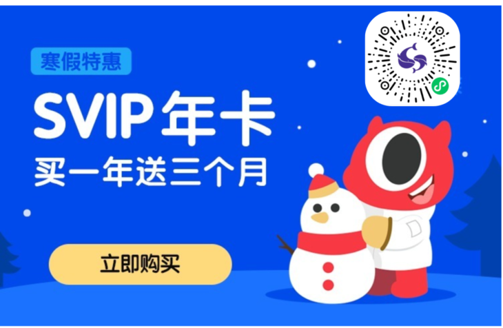 “寒假特惠”活动期间,SVIP年卡官方原价458元,直降到348元,然后再送3个月,会员还没到期的也可以放心囤,有效期顺延。