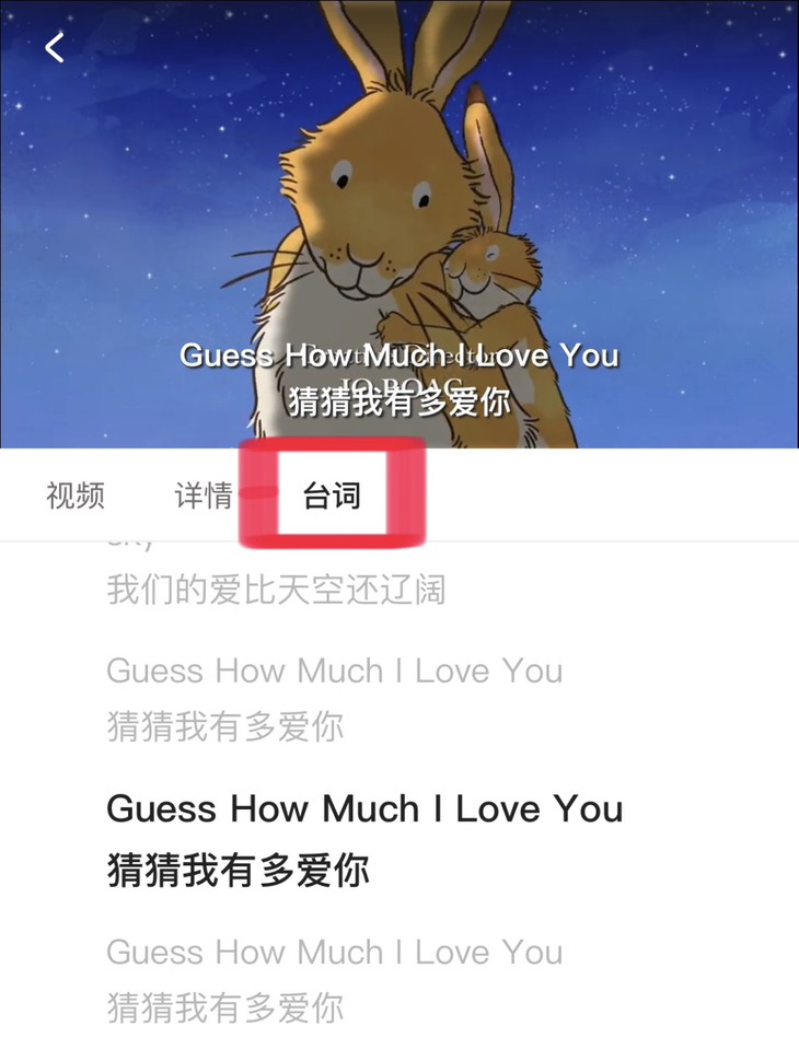 很多家长都担心孩子看屏幕时间太长伤眼睛,也可以在动画播放页面,点右上角的耳机图标进入只听模式,给孩子播放动画原声进行熏听。