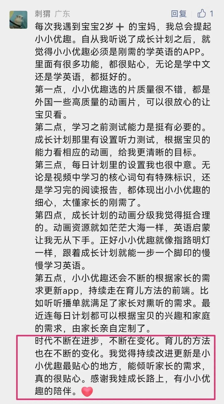 看看来自全国各地妈妈们使用小小优趣后的真实反馈吧。