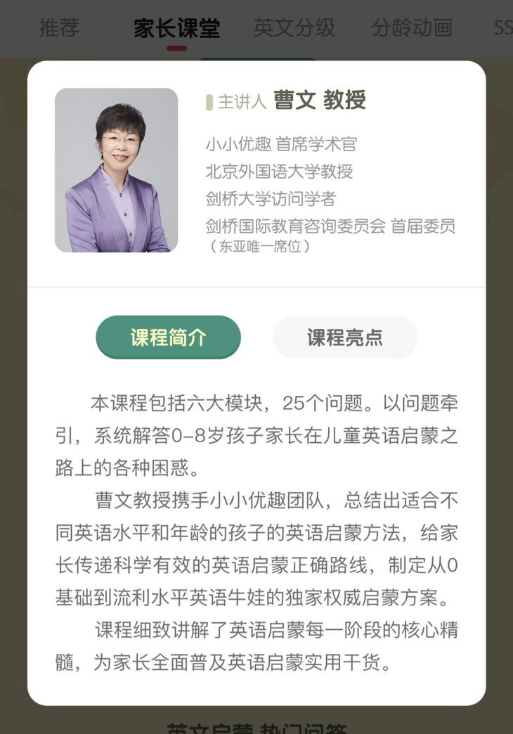 看完真的豁然开朗,再也不怕走弯路了,更重要的是,课程全部免费提供给大家学习,强烈建议先花点时间,把家长课程里的视频都看看,对英文启蒙会更有底。