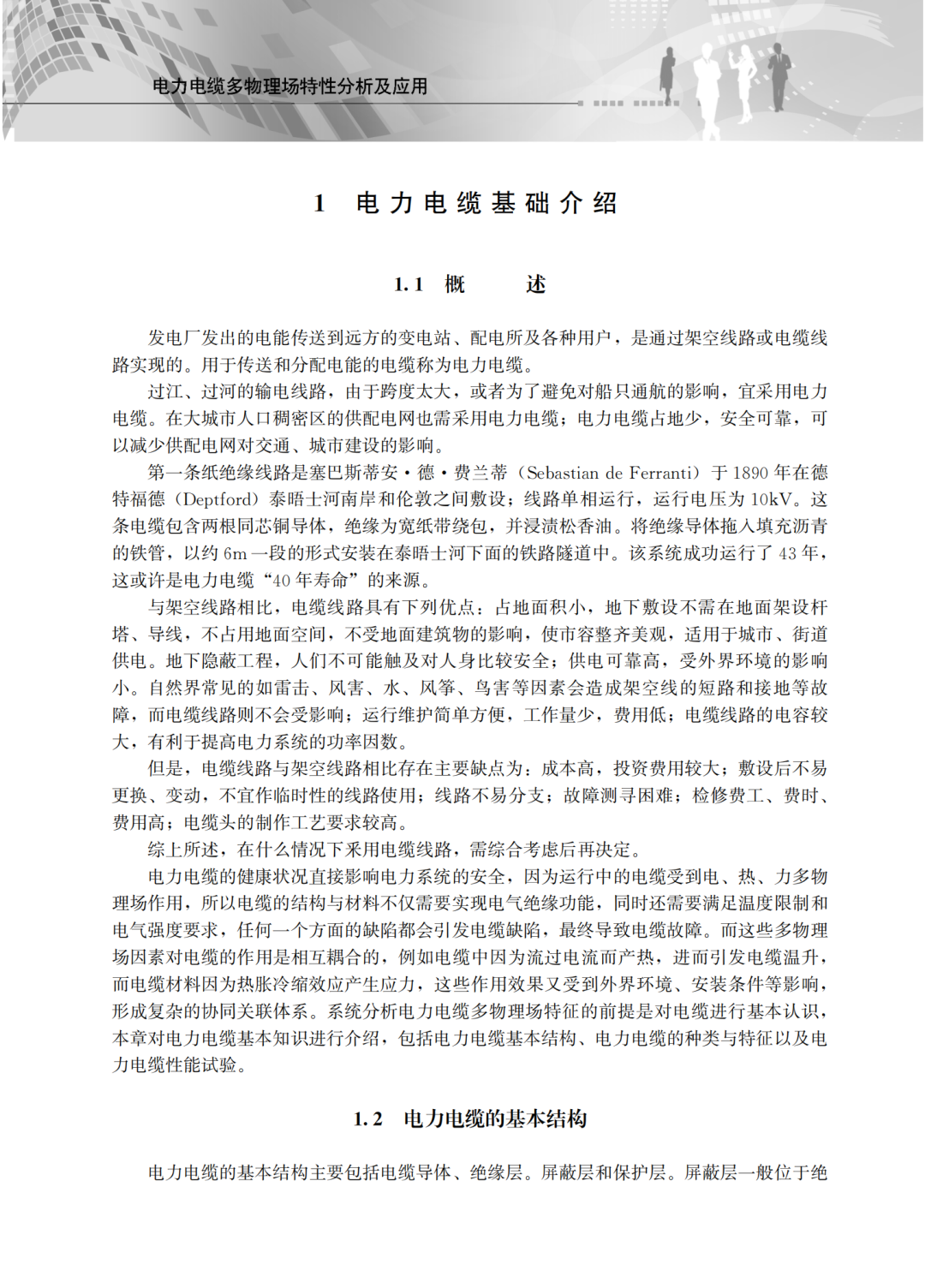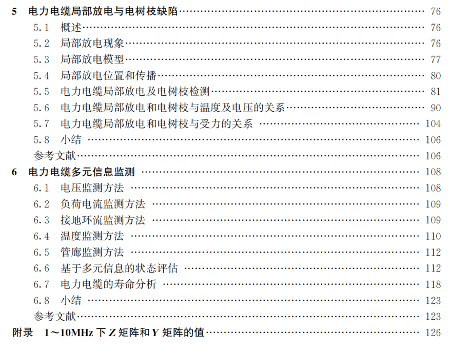 电力电缆运行受到电、热、力多物理场耦合作用影响,其在多物理场耦合作用下劣化,最终引发故障,本书详细梳理了电力电缆的电、热、力典型工况特性,为全面了解电缆真实工作状态奠定基础,同时系统阐述了典型缺陷在多物理场作用下的劣化发展规律,为电缆故障诊断提供新的依据和参考。