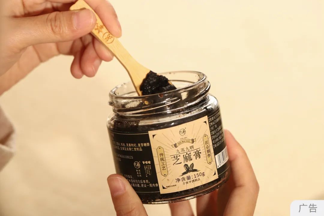 羊爸爸心选这款九蒸九晒芝麻膏正是在古方“九制胡麻”基础上制成。经过九蒸九晒古法蒸制,过程中不加一滴水,熬成的满满一瓶都是黑色营养。