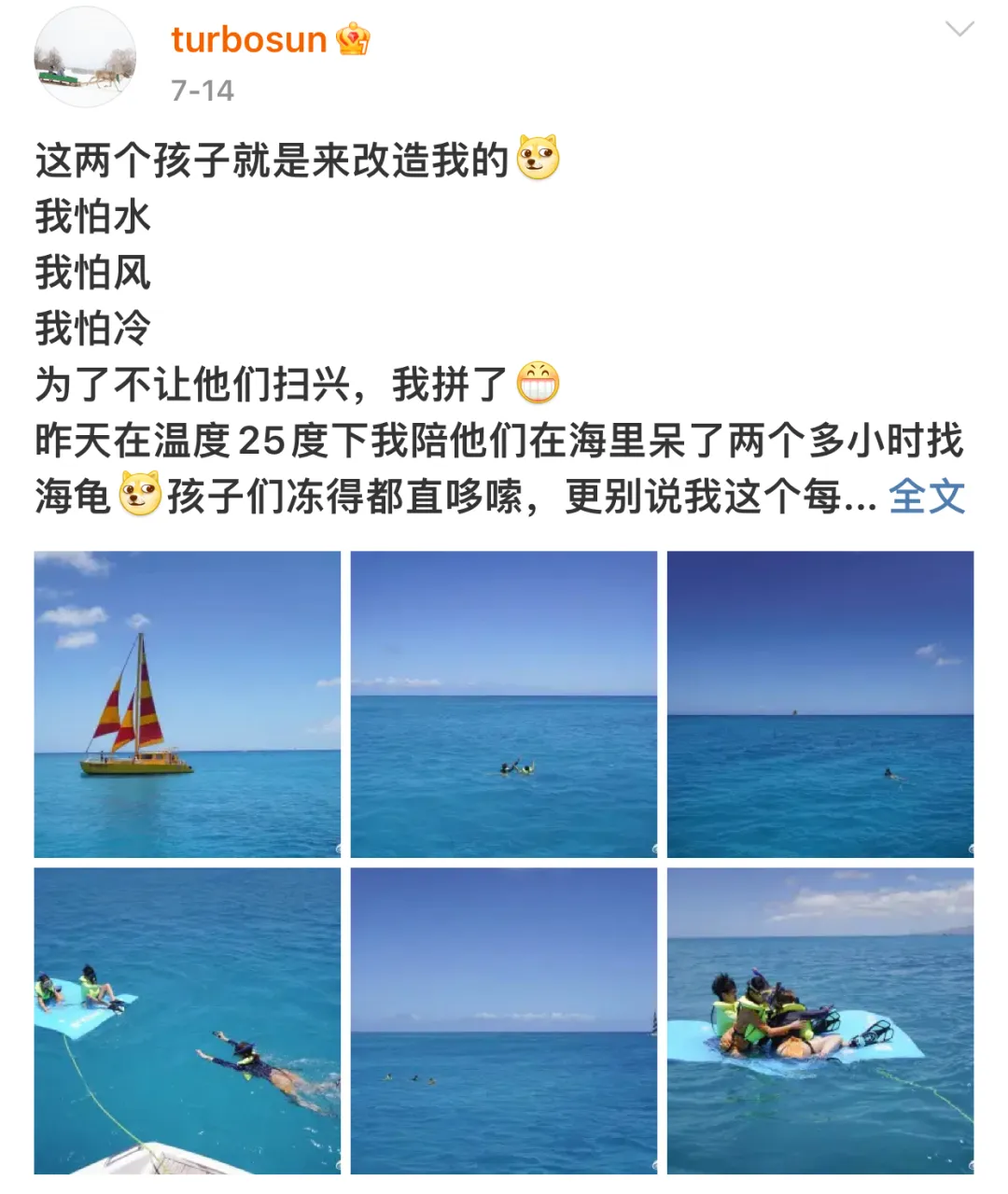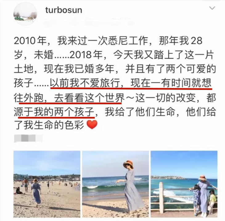她曾坦言:以前不爱旅行,现在一有时间就想往外跑,带孩子去看看这个世界。