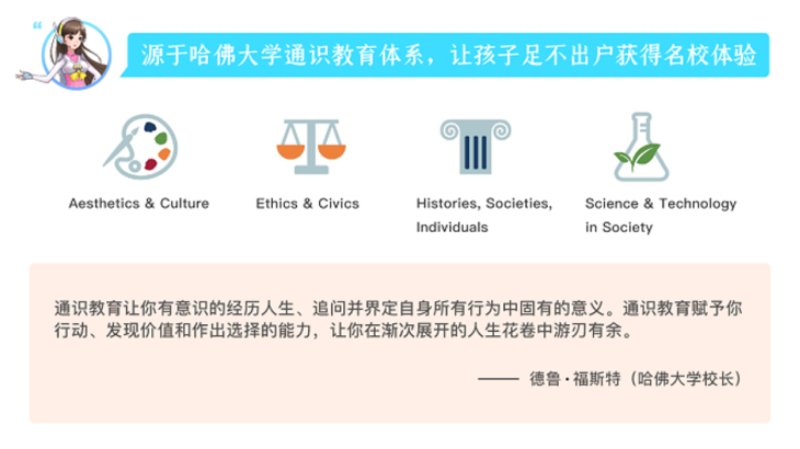 再仔细一看,原来是参考了哈佛大学通识教育体系。我知道,哈佛大学的通识教育体系一直很有名,但没仔细研究过,改天得上网查查看了。从简单介绍看,哈佛大学通识教育体系是分成四个主要领域:艺术与文化,伦理与公民,历史、社会与个人,科学与技术。如果童行学院真的参考了哈佛的课程体系设计,那可真是让人刮目相看了。