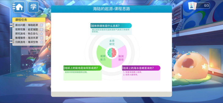 课里还挺巧妙,先带小孩去看火山喷发,观察火山熔岩冷却成固体,然后去找科学家开尔文,学习温度和固体、液体、气体的关系,让小朋友搞清楚温度降低的时候液体会凝聚成固体,然后再说地球早期就是有大量火山喷发,随着冷却,熔岩冷却成固体就形成了陆地。这一步一步引导,幼儿园小朋友都学会初中物理了,还学会了问问题和推理,不能更赞了!