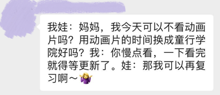 我想起来宣传页上看到的话了:“妈妈,我还想学童行学院,能不能拿我的动画片时间来交换啊?”