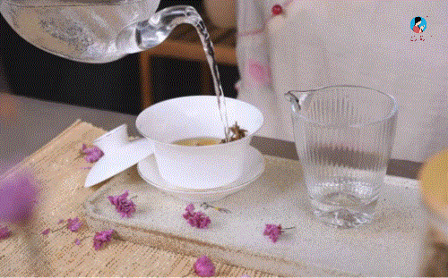 先用90℃的水温,低冲旋转沿盖碗边沿注水,润茶1次。