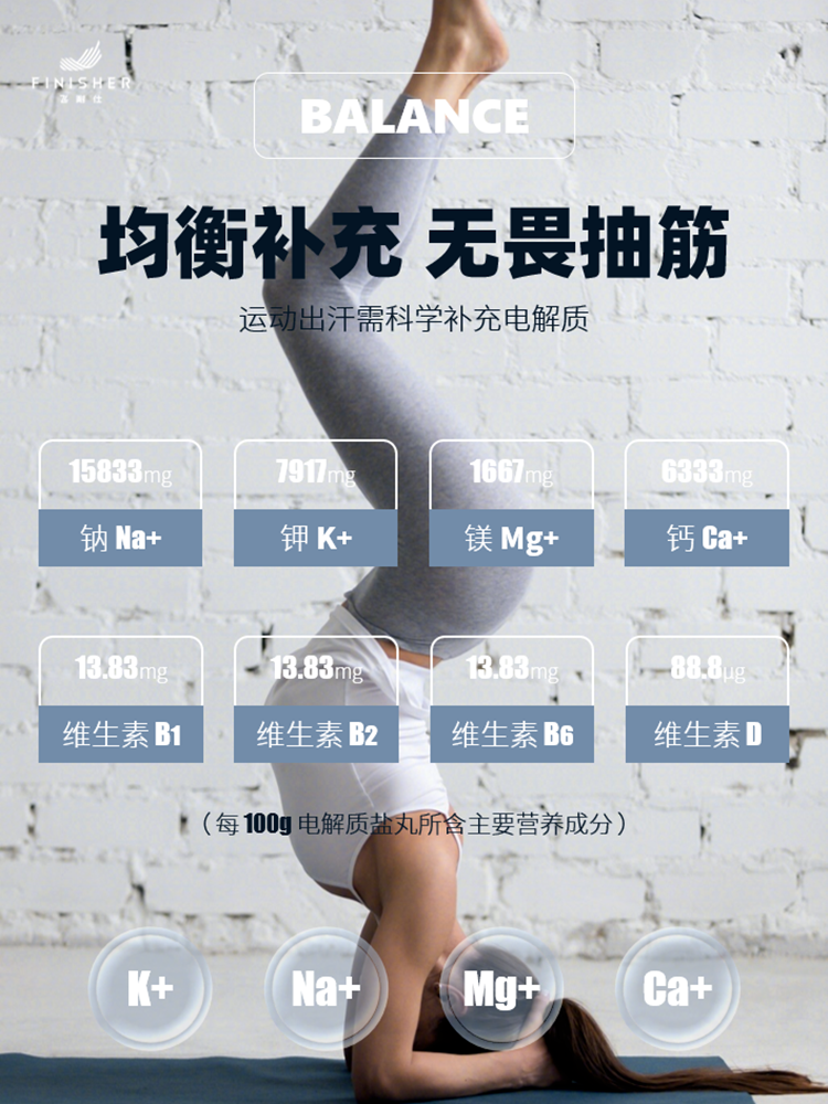 A11:电解质在人体中属于微量元素,少了对健康有害,多了对健康无益,适量均衡最关键。Q12:盐丸包装上的“运动营养食品”标志是什么意思?A12:飞耐仕盐速系列的电解质盐丸是中国第一款具有“运动营养食品”标志的盐丸产品,在配方更加科学、更适合中国人的体质。