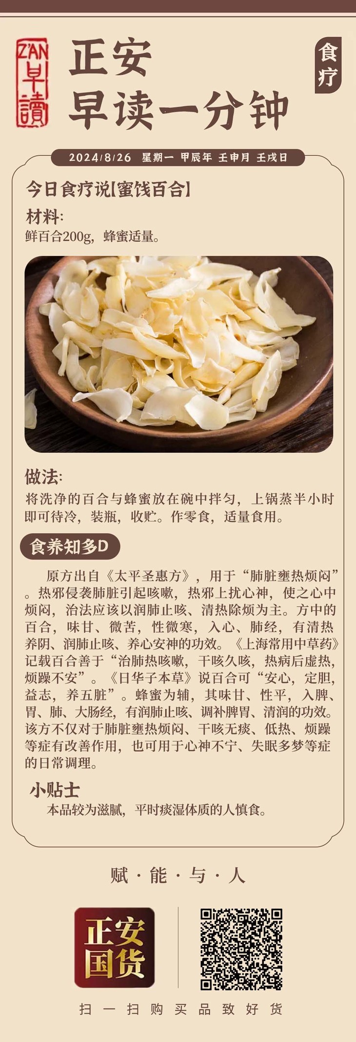 8月26日 应季食方【蜜饯百合】润肺止咳