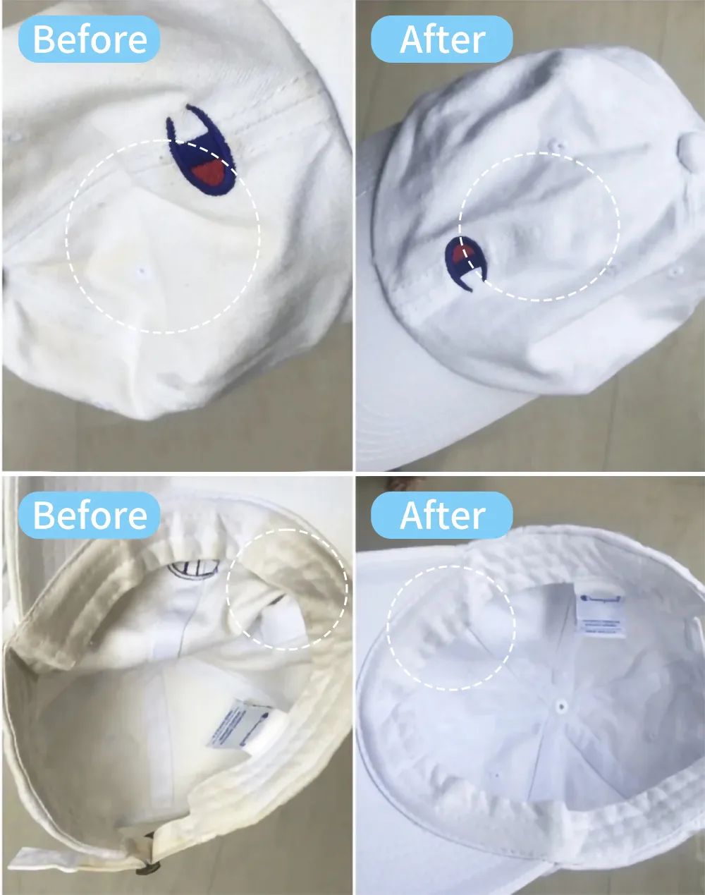 我迫不及待地买了一份回家用,脏到发黄又舍不得丢的帽子,一会儿就抢救成功啦,我妈妈都连连惊呼好神奇~