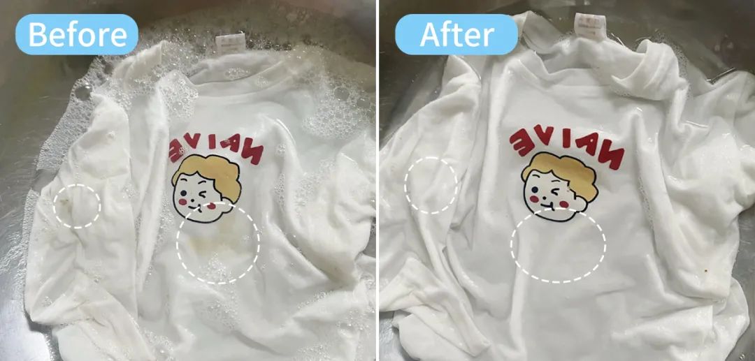 还拿它跟普通洗衣粉做了浸泡对比,结果...