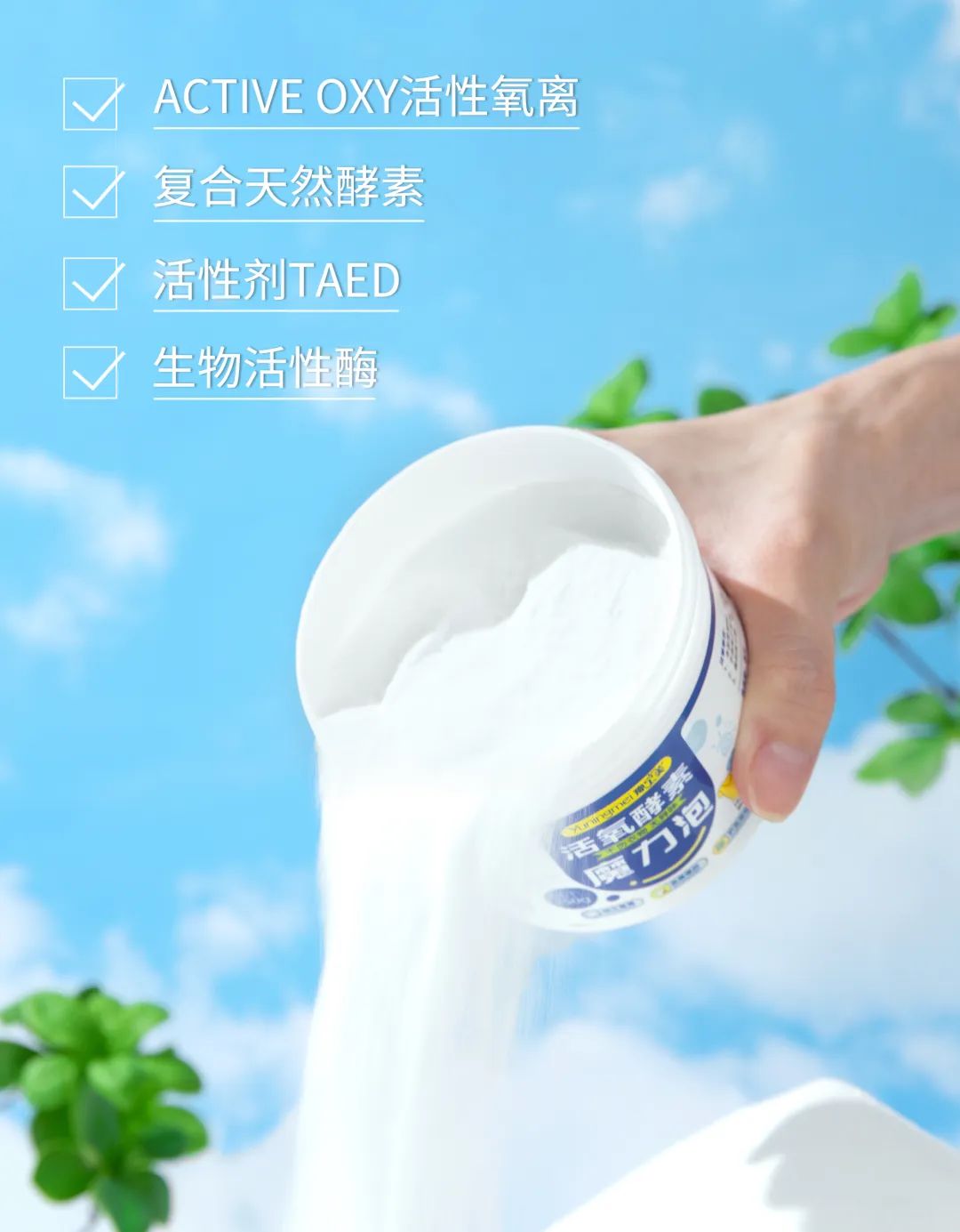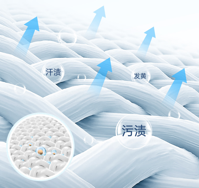 同时综合水分释放亿万氧原子,钻入纤维内部分解剥离污渍,就像有千万双手给它揉搓,藏的再深的污渍也被洗的清爽干净。