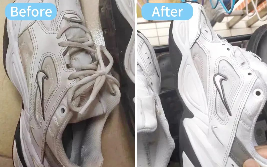 以前洗鞋刷到手痛都洗不干净,现在泡10分钟堪比手刷1000次的效果~