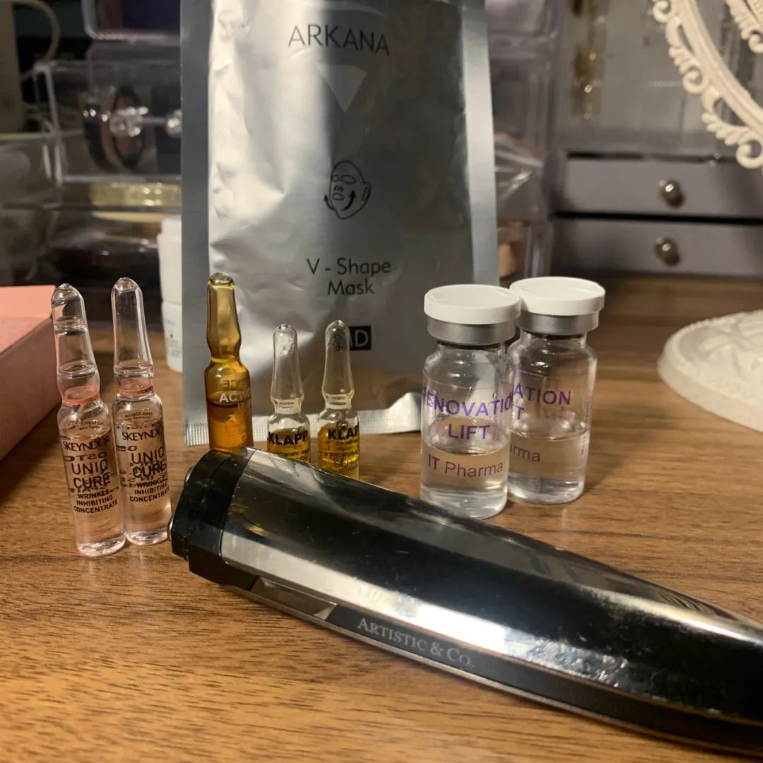 我研究了一下,其实市面上的量子提拉,就是用一个可以温热且带有电流的美容仪,帮你快速倒入美容液,最后再敷个面膜巩固,等于我轻轻松松在家也能做啊,并且家庭版的量子提拉法不用去美容院,手边的小尖刀、魅影都可以,搭配介质有非常好的抗地心引力效果。