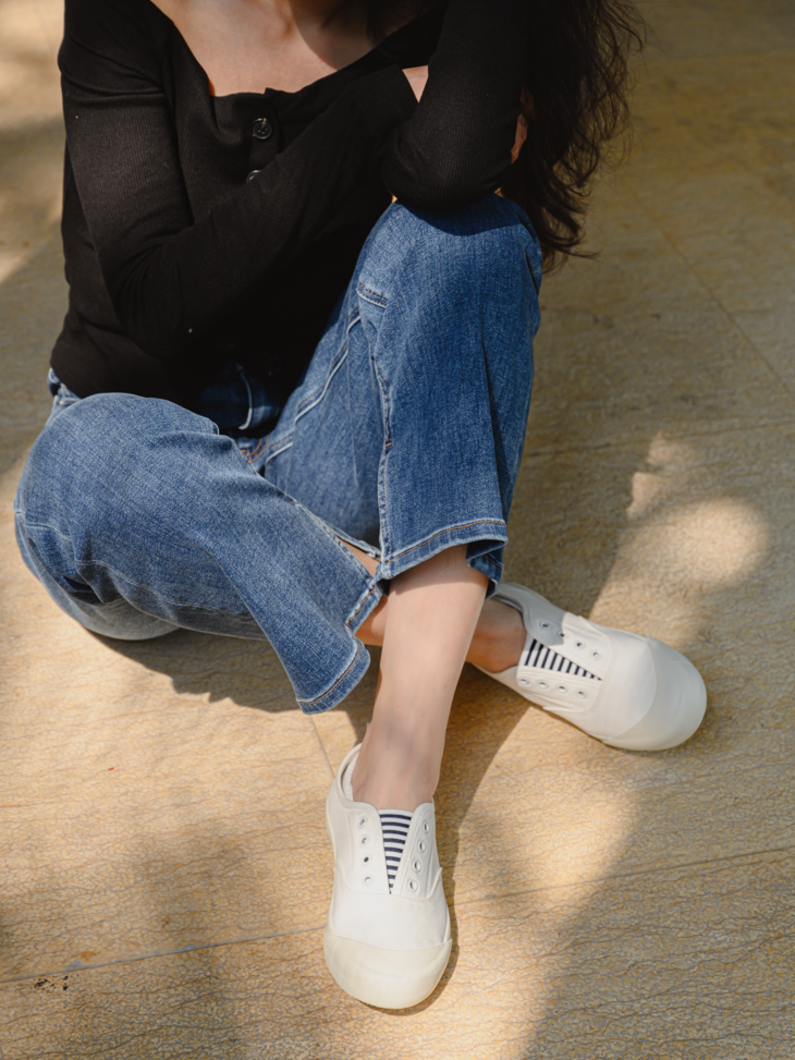 美貌都是得放在最后说的优点。鞋舌部分的蓝白条纹的松紧带是点睛之笔,有股清爽的学院气息~