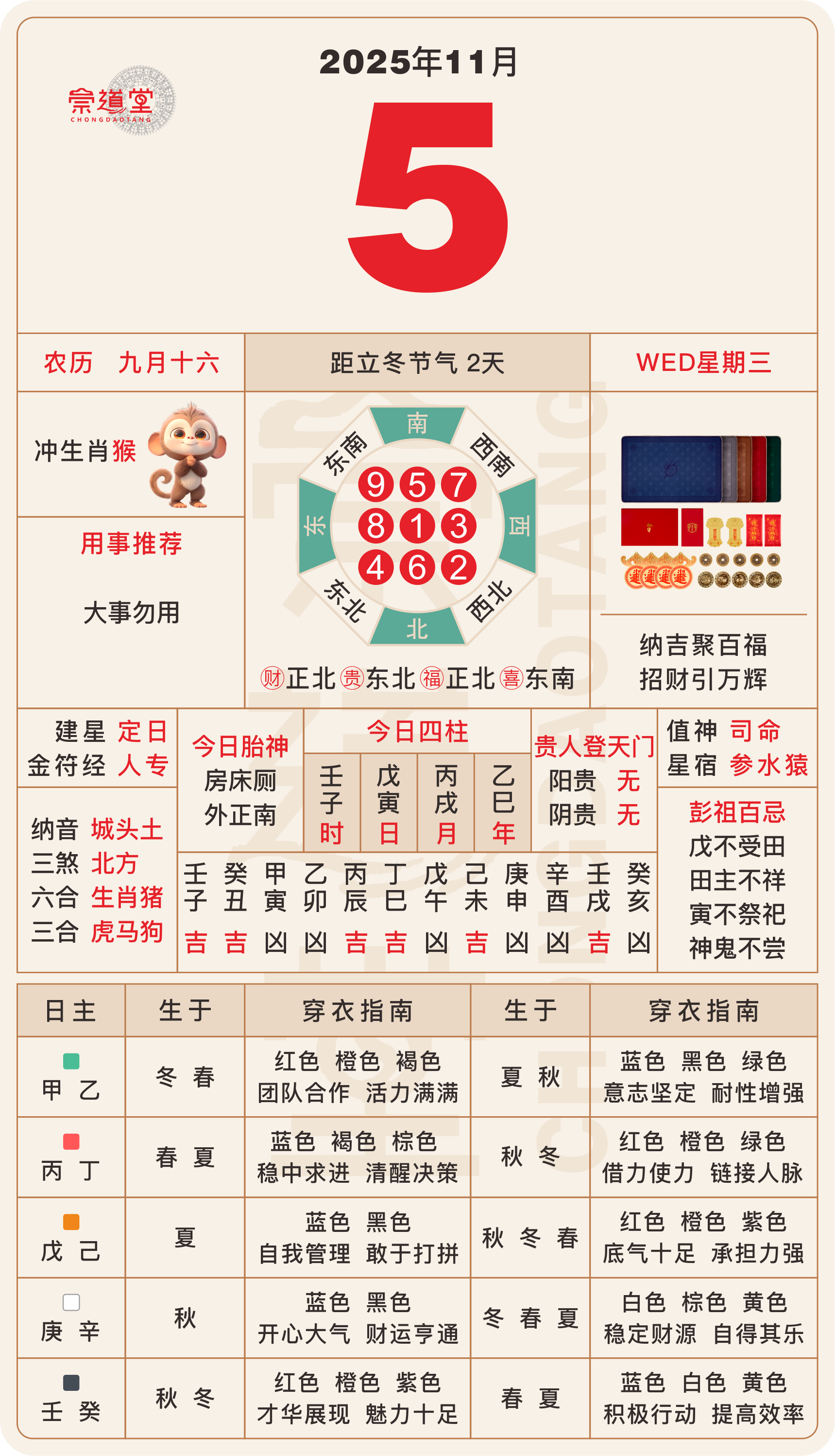 2025年11月17日 农历九月廿八 庚寅日 冲猴