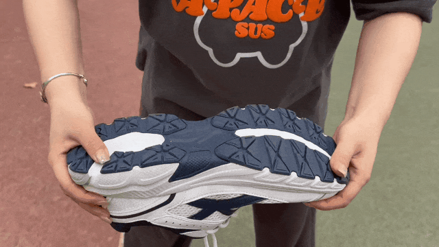 运动助跑的时候,鞋底凸出的鱼骨纹路,加大对地面的摩擦力,助跑的时候不会打滑,抓地力强悍~
