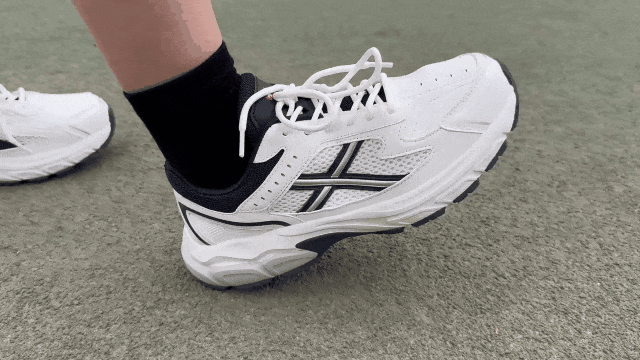 在做剧烈运动的时候,弹性中底会有有承托力,走不平坦的路也能保证脚掌舒适。