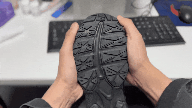 而且这种轮胎大底设计,让你在“山地、雨雪、泥泞路面”都能稳如磐石,比普通运动鞋防滑性能提升太多!