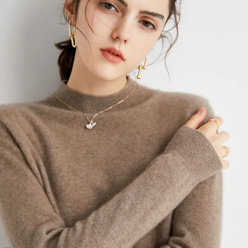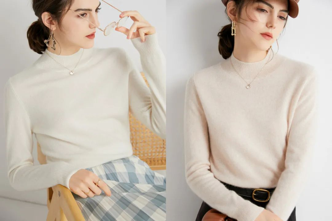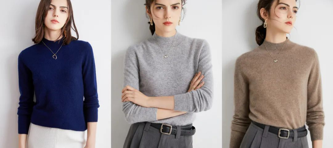 这款半高领羊绒衫设计就刚刚好,简单大方,且有更多颜色选择。