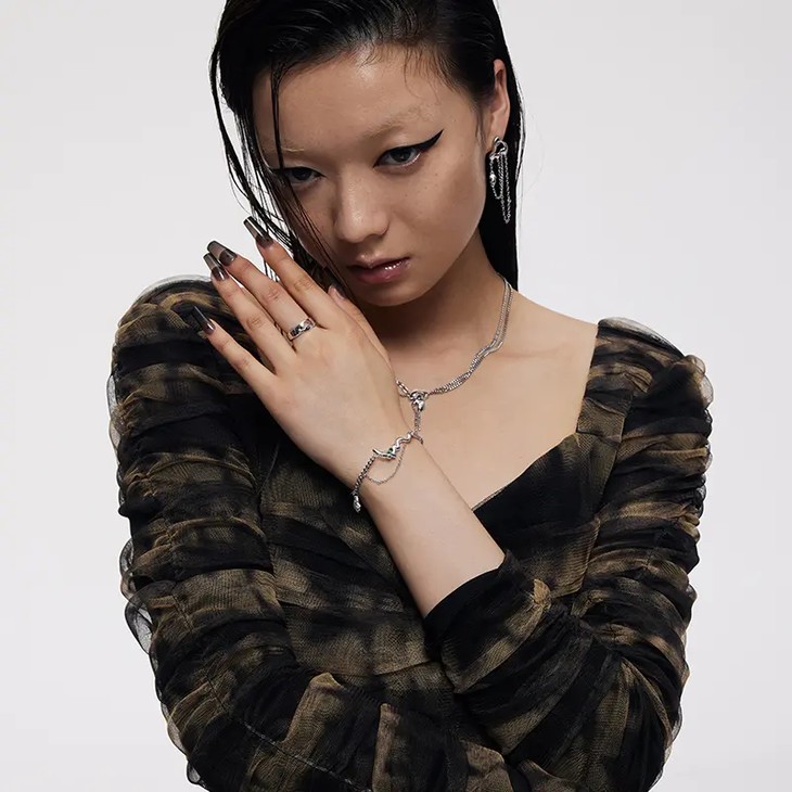 金属是具象化、真实可感的光,深埋地底,在形态变革中凝结汇聚,从而形成能量!黑白渐变色调锆石,在光影流转间映射神秘之感。