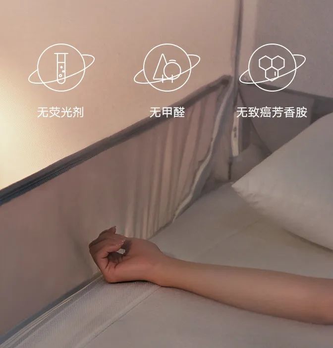 蚊帐的安全级别达到婴儿可接触级别A类标准,敏感肌可直接贴脸使用,安全更放心。
