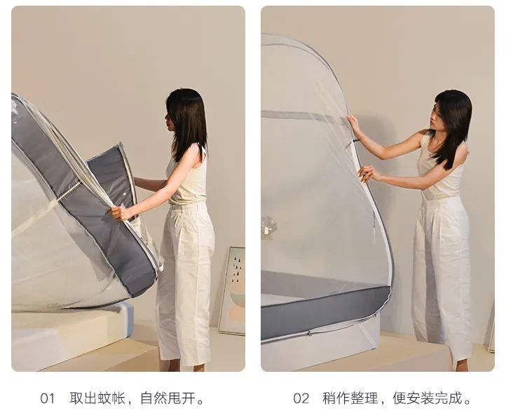 一默这款蚊帐颠覆传统,一体成型设计,安装简单又粗暴,不用说明书都能秒速安装不出错!