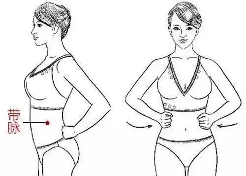 足少阳胆经腧穴,在侧腹部,第11肋骨游离端下方垂线与脐水平线的交点上。简单取穴法是,拇指在前,双手叉腰,拇指基本与脐相平,指下便是。带脉就像木桶的桶箍,管束诸经,专门治疗肥胖者的腰腹部肥大。
