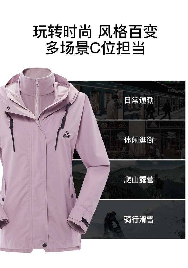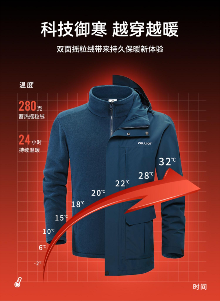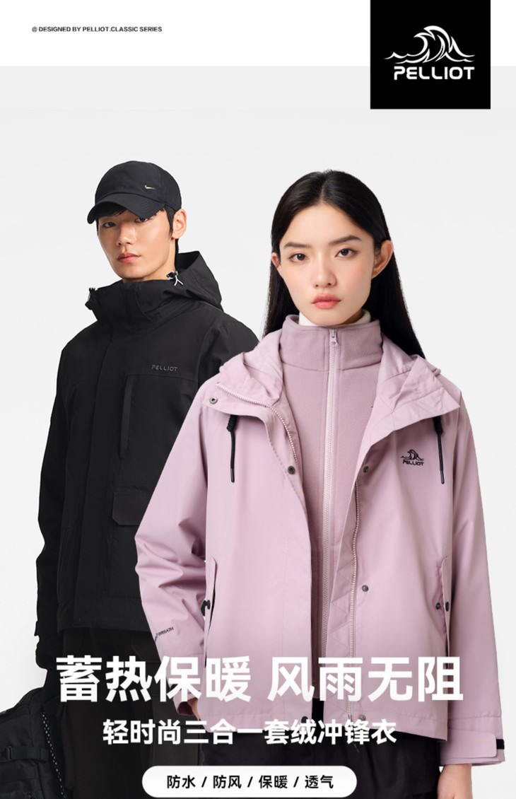 冲锋衣是一种采用防水透湿功能的纺织面料加工制成的,用于户外运动的服装。今天推荐一款伯希和露营冲锋衣抓绒两件套,户外运动必备装备,既有羽绒服的保暖性能,又轻便简洁,凭借其防风防水透气的功能特点与帅气时尚的夹克版型,深受户外运动爱好者的喜爱,是秋冬季户外必买。