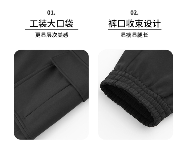 弹力松紧腰,修身小直筒版型,略带瘦腿设计,简简单单,大大方方,从从容容,可以搭配运动鞋、户外鞋、登山鞋、小白鞋、甚至于皮鞋,都没有任何的问题。