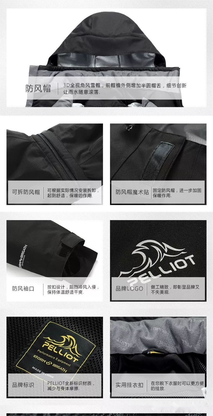 表面是专业的防风防水御寒面料,扎实,挺括,耐撕拉,御寒能力出色,西北风再大也吹不进,连帽不可拆设计,门襟笔挺,上身更有型,合身H版型,上下双头拉链。上身可以让滑雪服更好的贴合身体,更保暖。