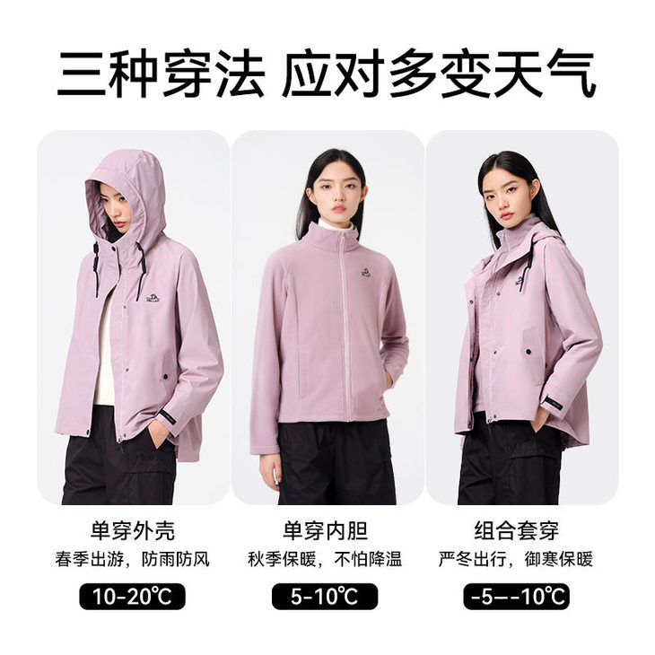 单穿外套防风防雨且易于携带,单穿内胆休闲保暖,内外结合则可应付严寒、暴雨等复杂的场合。就其实用度来说,三合一冲锋衣无论是户外探险、旅游休闲还是日常穿着,都是不错的选择。
