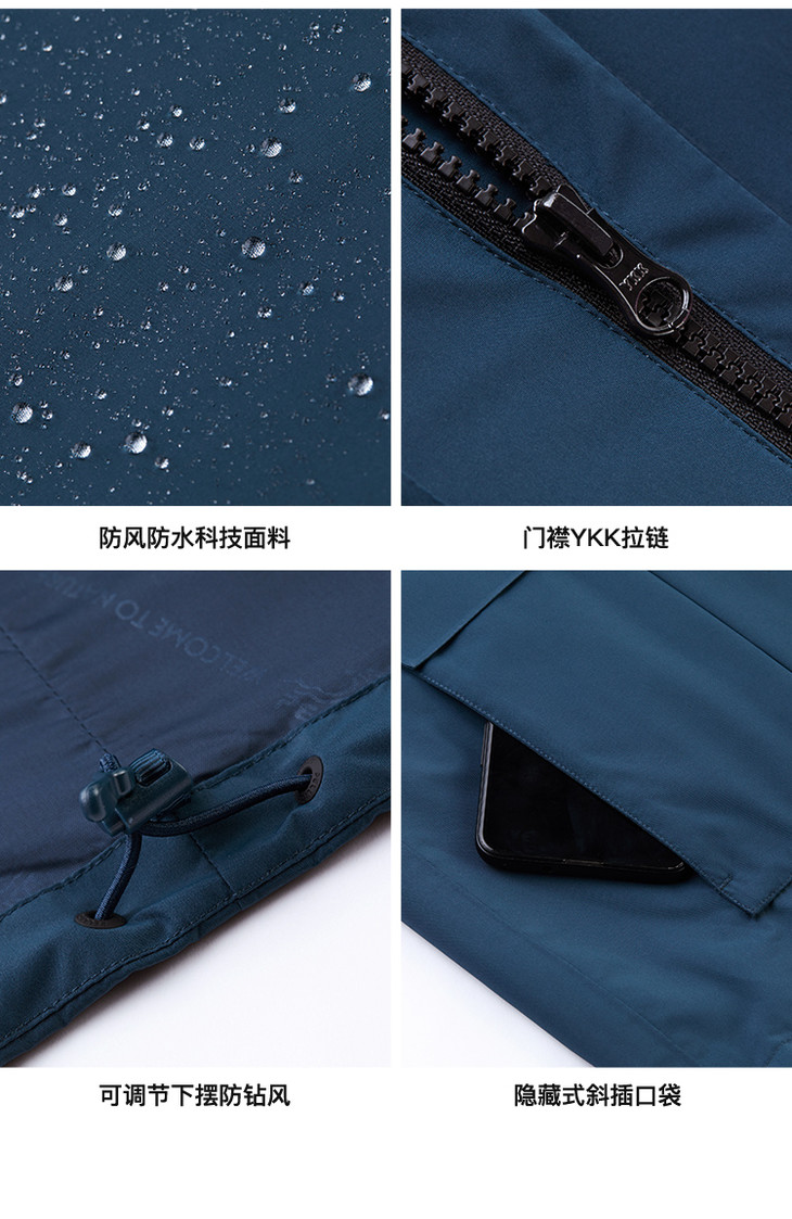 整体很轻,分里外两层,外层防风防水,内衬保暖锁温,不管外面多冷的风吹,里面都是暖暖的。外面这层采用防水透湿面料,不管下小雨,还是冬天下雪穿,都不怕湿,雨水打到上面,轻轻一擦就干了。内层双面摇粒绒,面料手感柔顺,非常舒服。