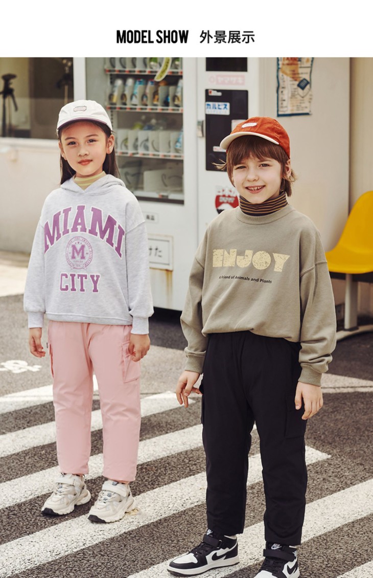 采用防风面料,保暖性好,冬天下雪穿也不怕冷,保暖性很强,看口袋,好精致的口袋,工装的感觉,看着就严实,也很精致,真的无敌好!羽绒裤很轻薄,小宝宝活动量大,穿大鹅不影响活动,四个颜色都是日常好搭配的颜色,纯色打底,简单时尚。