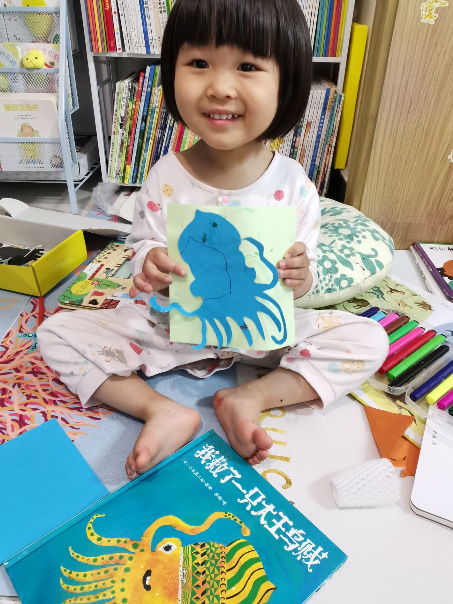 《 我救了一只大王乌贼》 故事告诉小朋友们遇到困难要及时寻求老师和大人的帮助,还教小朋友们跳了一支乌贼热舞,可谓是读书运动两不误。