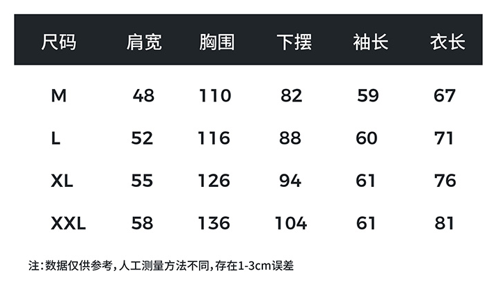卫衣有些偏宽松,这里奉上尺码表,大家量一下尺寸再选哈👇