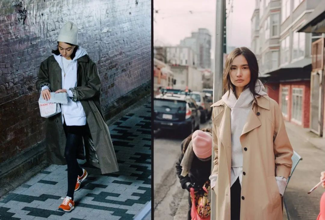 活力率性的卫衣,能中和风衣自带的成熟气质,打造出随性洒脱的休闲风,怎么穿怎么好看。