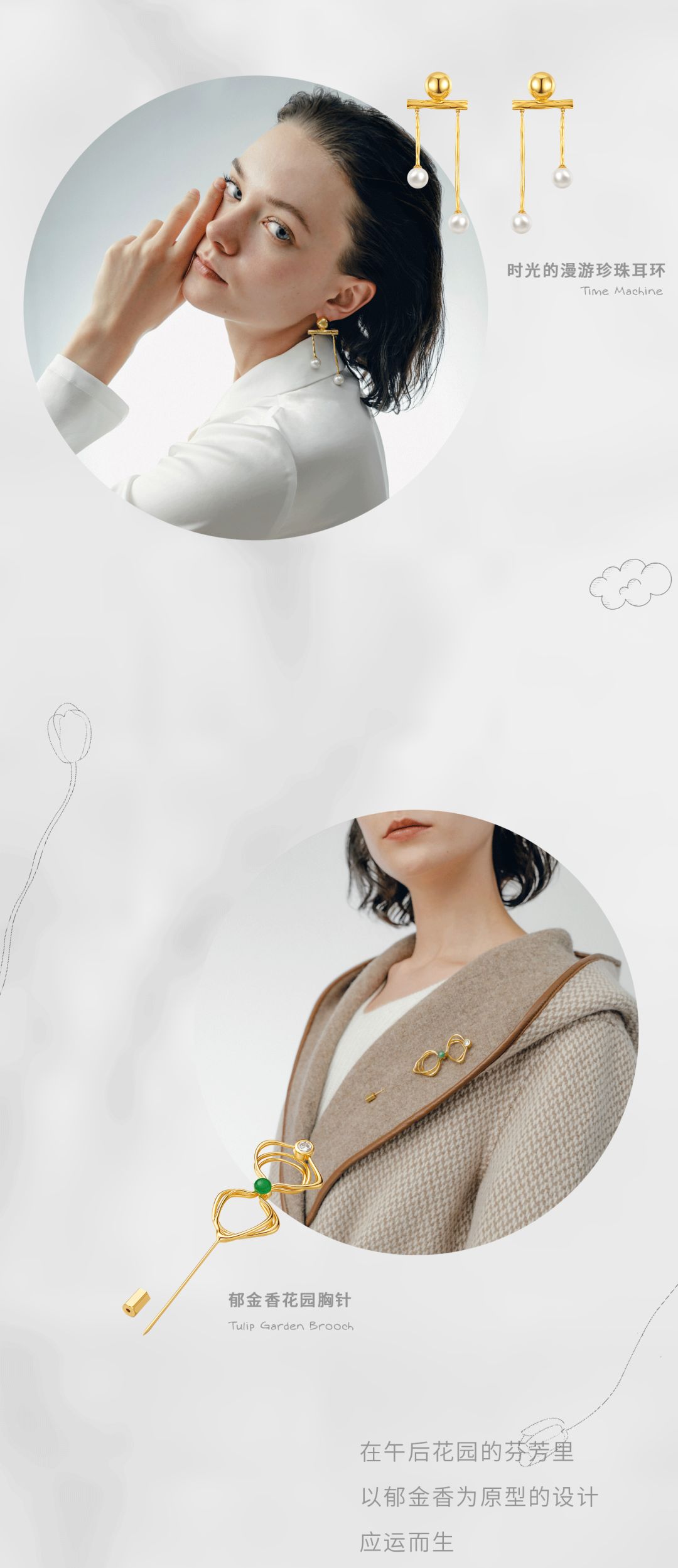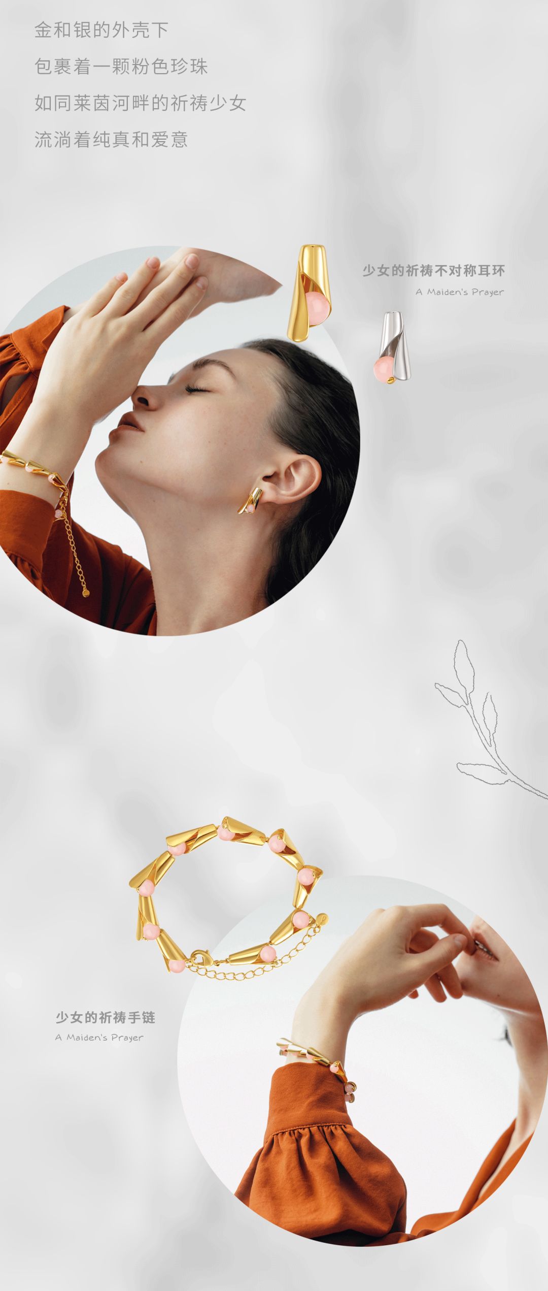 将迷人的金色线条和璀璨的珍珠碰撞