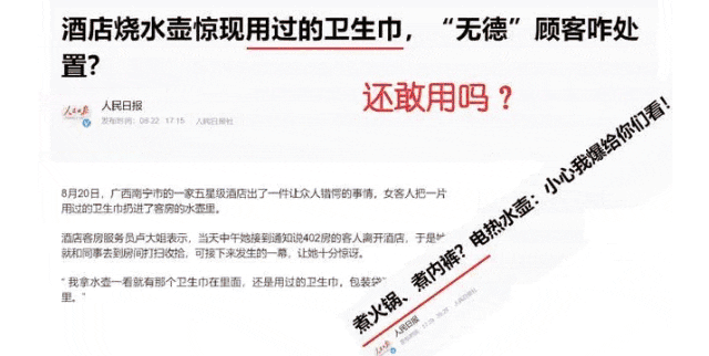 在一次看到朋友实拍酒店水壶里出现的一只袜子,从此我都不敢打开酒店的烧水壶了。