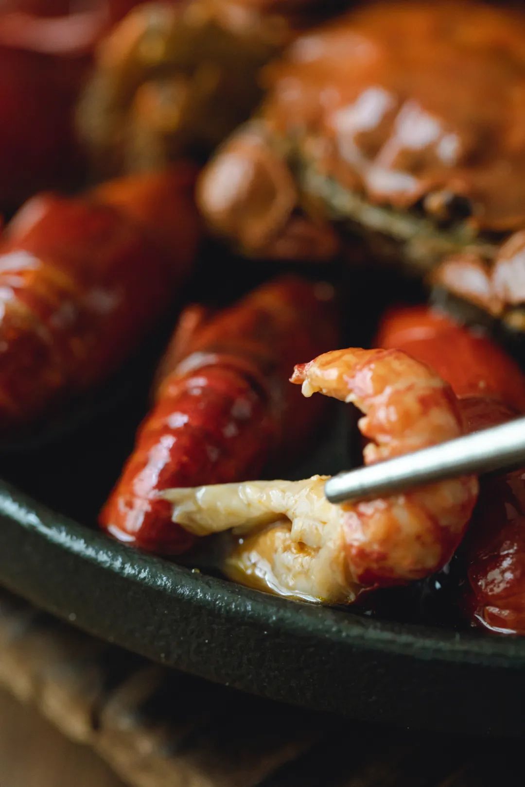除了珍贵的六月黄熟醉蟹,风物君还为大家带来了老潘家同款配方的熟醉小龙虾。