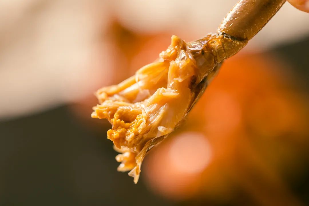 双壳蟹则更是顶级,每一只蟹里面都有一层完全形成的软壳(软壳也能食用,钙含量丰富),肉质更加饱满,蟹黄也更加丰腴。