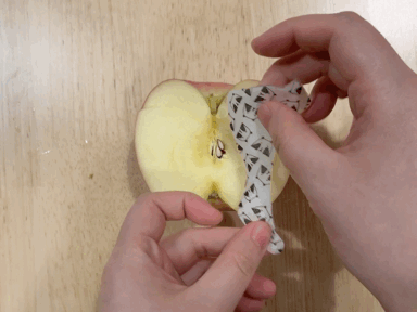 加热取出后,可以看到贴眼膜的这半边苹果依然水盈盈的,并且没有氧化,而未贴的却明显氧化干皱。