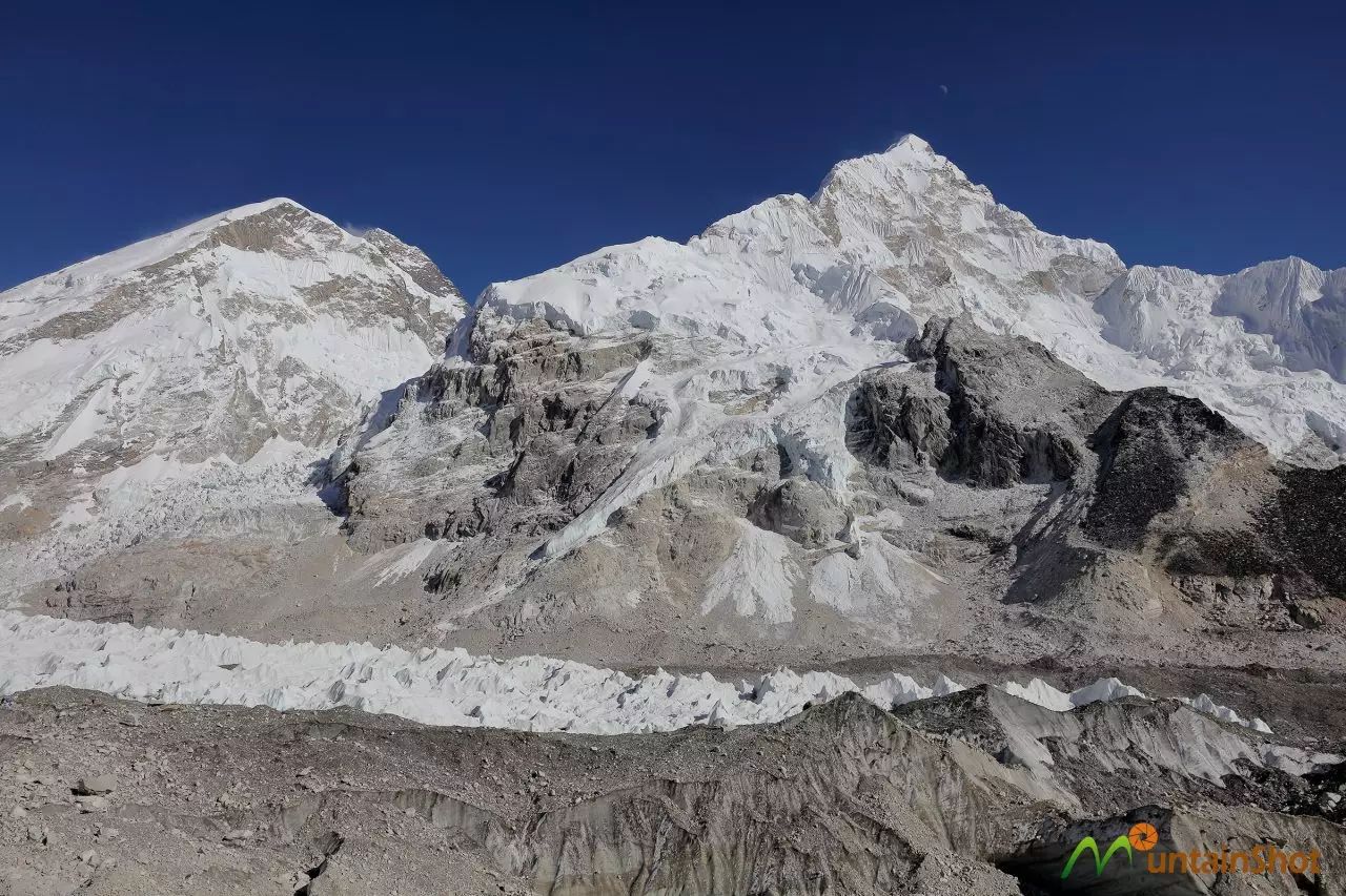 2,Gorakshep–Kala Patthar–Pumuri BC:主要观赏Everest\珠穆朗玛峰、Pumuri\普莫里峰、Makalu\马卡鲁峰、Nuptse\努子峰;
