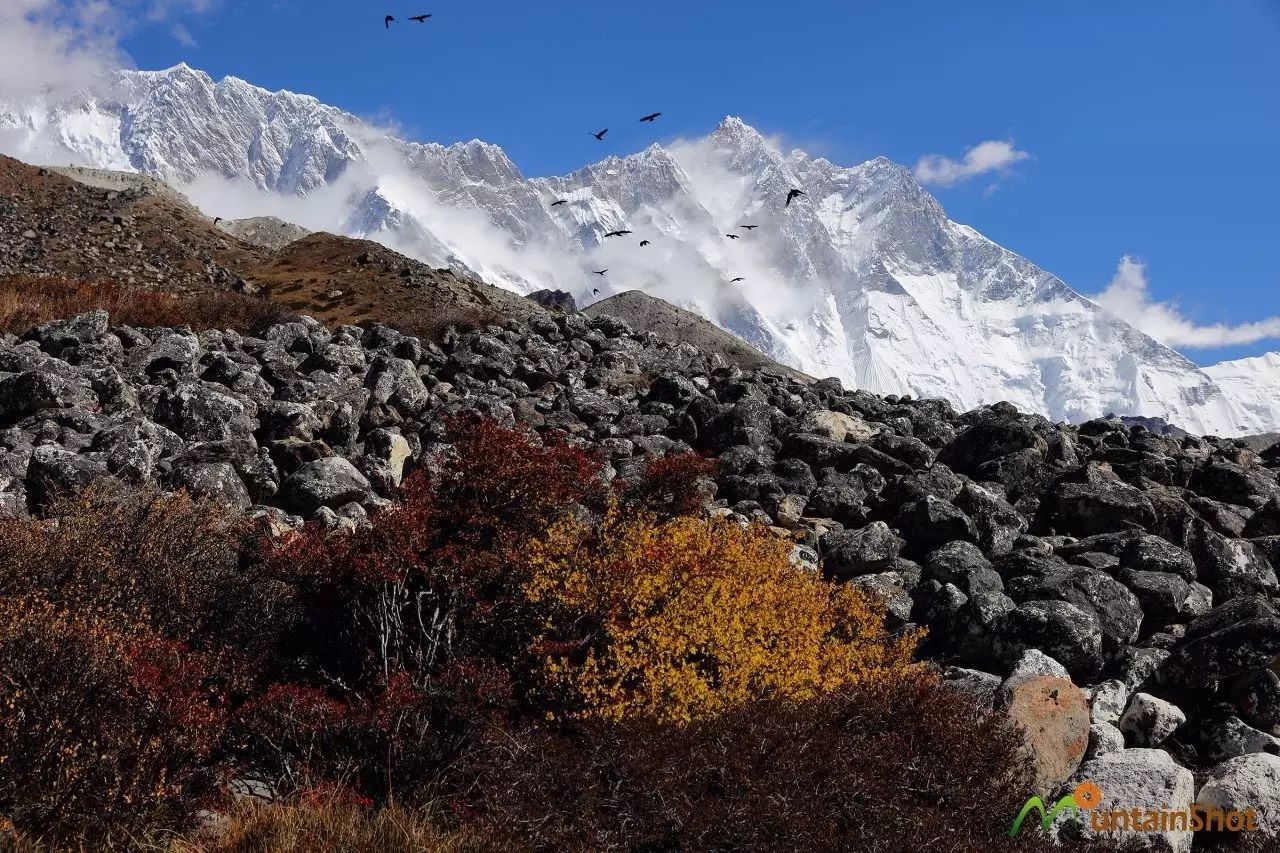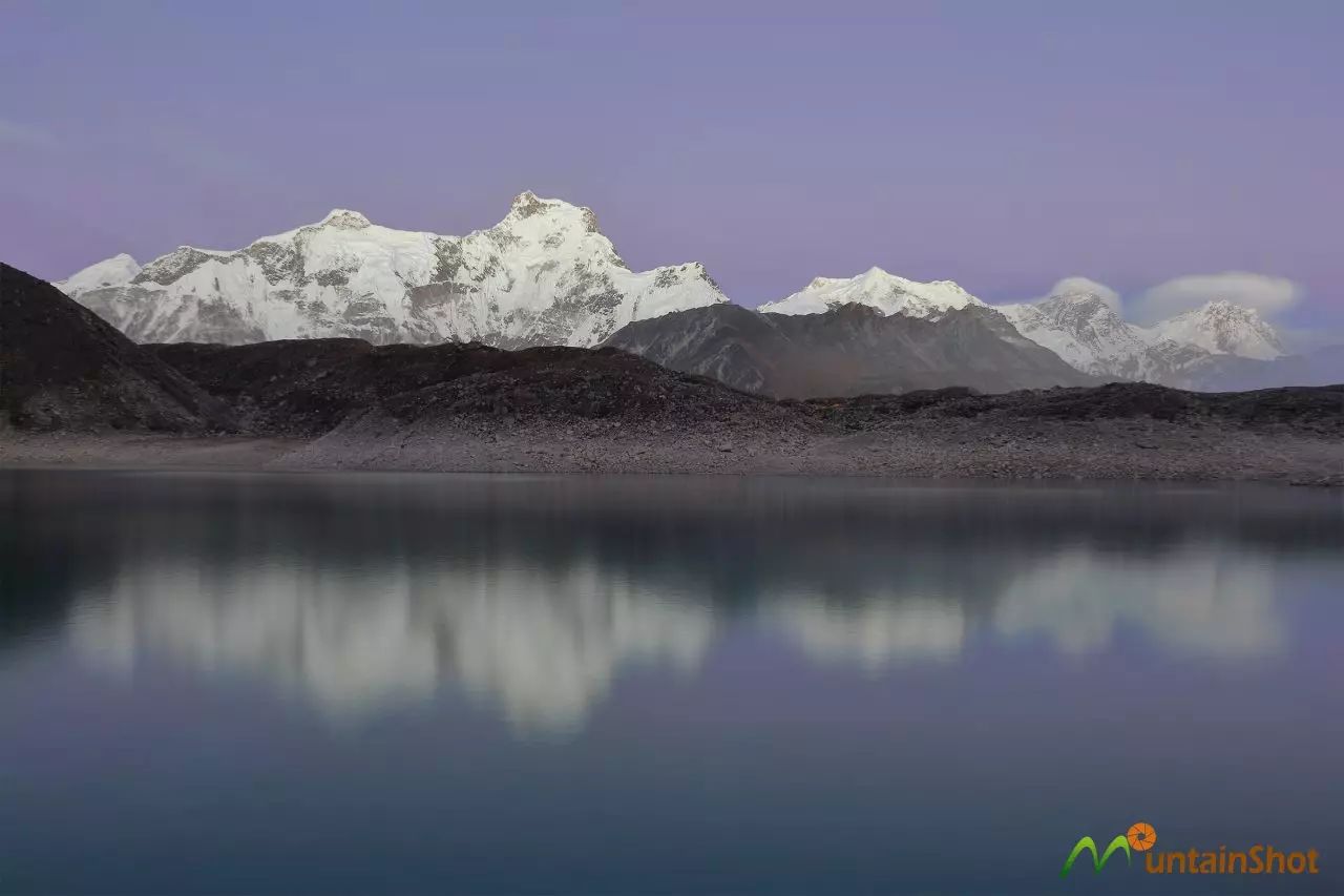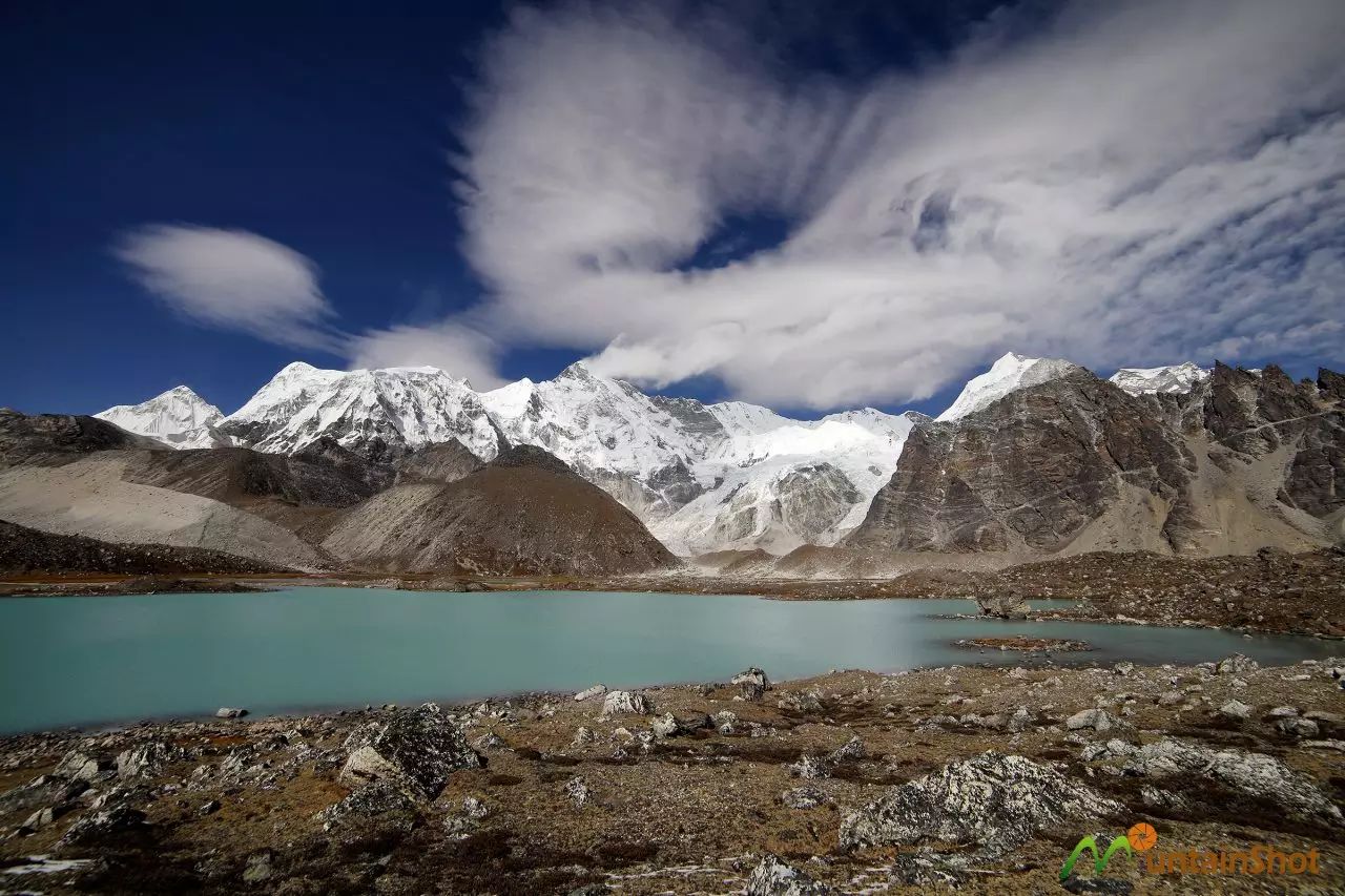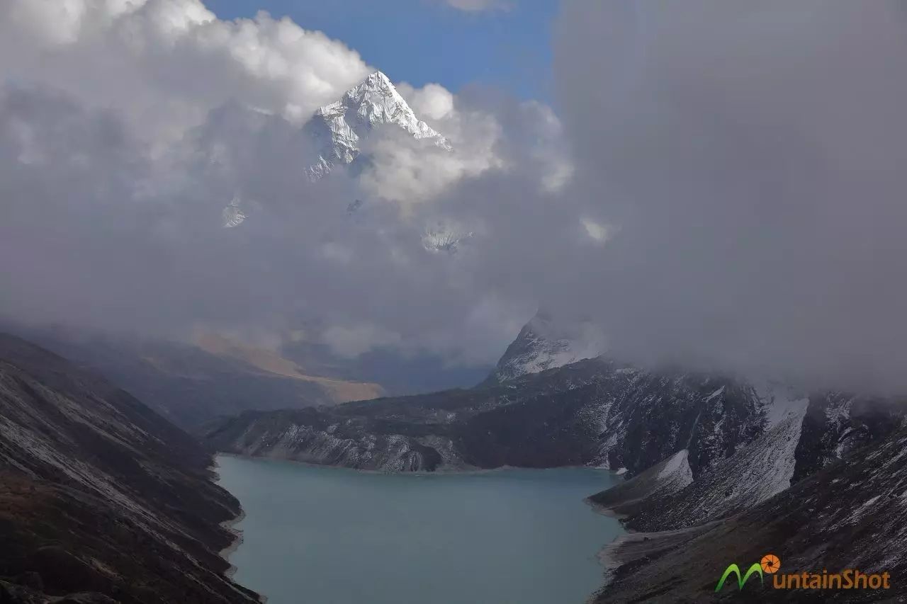 (IMJA TSO冰湖之上Num Ri\努姆日和Baruntse\巴伦侧峰↑)